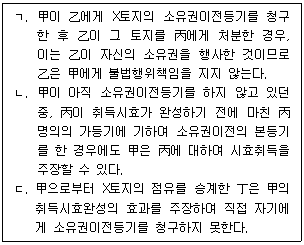 甲이 乙명의의 X토지에 대하여 점유취득시효기간을 완성한 경우에 관한 설명으로 옳지 않은 것을 모두 고른 것은? (다툼이 있으면 판례에 따름)