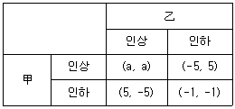 보수 행렬이 아래와 같은 전략형 게임(strategic form game)에서 보수 a값의 변화에 따른 설명으로 옳은 것은? (단, 보수 행렬의 괄호 안 첫 번째 값은 甲의 보수, 두 번째 값은 乙의 보수이다.)