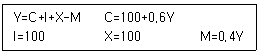 표의 경제모형에서 한계수입성향이 0.1로 감소하면 (ㄱ)균형국민소득과 (ㄴ)순수출 각각의 변화로 옳은 것은? (단, Y는 국민소득, C는 소비, I는 투자, X는 수출, M은 수입이다.)