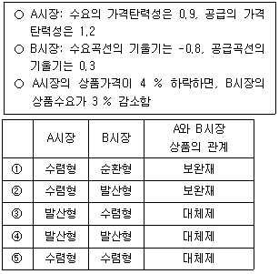 다음 조건하에서 거미집이론(Cob-web theory)에 의한 부동산시장 A와 B의 모형형태와 A시장과 B시장 상품의 관계는? (단, X축은 수량, Y축은 가격이고, 가격변화에 수요는 즉각 반응하지만 공급은 시간적인 차이를 두고 반응하며, 다른 조건은 동일함)