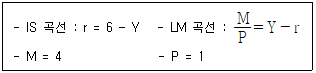 아래의 폐쇄경제 IS-LM 모형의 초기 균형에서 중앙은행이 이자율을 0.5만큼 인상시키고자 할 때, 명목화폐공급량 변화분의 절댓값은? (단, Y는 국민소득, r은 이자율, P는 물가, M은 명목화폐공급량)