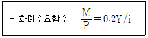 화폐수요함수가 아래와 같이 주어진 경제에서 명목 GDP가 1,000이고 명목이자율(i)이 0.04일 때, 화폐의 유통속도는? (단, M은 통화량, P는 물가, Y는 실질 GDP)