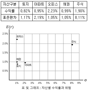 다음은 일정기간 부동산자산과 금융자산의 투자 자료이다. 이 경우 합리적인 투자자가 가장 선호할 자산은? (단, 주어진 자료에 한함)