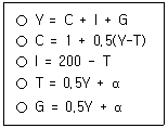 아래의 거시경제모형 초기 균형에서 외생적 정부지출(α)을 1만큼 증가시킬 때, 거시경제 변수의 변화에 관한 설명으로 옳지 않은 것은? (단, Y는 국민소득, C는 소비, I는 투자, G는 정부지출, T는 조세)
