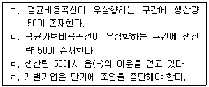 완전경쟁시장에서 개별기업은 U자형 평균비용곡선과 평균가변비용곡선을 가진다. 시장가격이 350일 때, 생산량 50 수준에서 한계비용은 350, 평균비용은 400, 평균가변비용은 200이다. 다음 중 옳은 것을 모두 고른 것은?