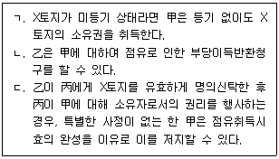 甲이 20년간 소유의 의사로 평온, 공연하게 乙소유의 X토지를 점유한 경우에 관한 설명으로 옳은 것을 모두 고른 것은? (다툼이 있으면 판례에 따름)