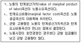 노동시장이 수요독점일 때 이에 관한 설명으로 옳은 것을 모두 고른 것은? (단, 생산물 시장은 완전경쟁시장이며, 노동수요곡선은 우하향, 노동공급곡선은 우상향한다.)