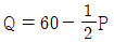 이고 두 기업 A, B의 비용함수가 각각 CA = 40QA + 10, CB = 20QB + 50 일 때, 꾸르노 균형에서 총생산량(Q*)과 가격(P*)은? (단, Q는 총생산량, P는 가격, QA는 기업 A의 생산량, QB는 기업 B의 생산량이다.)