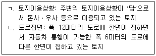 감정평가사 A는 표준지공시지가의 감정평가를 의뢰받고 현장조사를 통해 표준지에 대해 다음과 같이 확인하였다. 표준지조사평가보고서의 토지특성 기재방법으로 옳게 연결된 것은?
