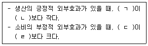 ㄱ: 사회적 한계비용, ㄴ: 사적 한계비용, ㄷ: 사회적 한계편익, ㄹ: 사적 한계편익