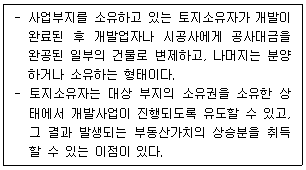 다음 설명에 모두 해당하는 부동산개발방식은?