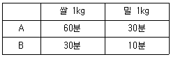 개인 A와 B는 하루 8시간 일하고, 쌀을 생산하거나, 밀을 생산하거나, 둘 다 생산한다. 쌀과 밀의 1kg 생산에 필요한 시간은 아래와 같다. 두 사람은 자급자족하지 않고 각자 비교우위가 있는 재화에 특화생산한 후 거래함으로써 이익을 얻고자 한다. 두 사람이 모두 거래를 통해 이익을 누리기 위하여, 쌀 1kg과 거래되는 밀의 양(kg)으로 옳은 것은?