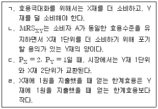 효용극대화를 추구하는 소비자 A가 X, Y 두 재화를