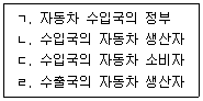 자동차를 수입하는 A국이 자동차 수입에 관세를 부과하였다. 이 관세로부터 이득을 보는 집단을 모두 고른 것은? (단, A국은 세계시장에서 소국이다.)