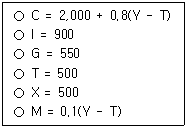 개방경제 균형국민소득 결정모형이 아래와 같다. 정부지출과 세금을 동시에 50씩 늘리는 경우 (ㄱ)균형소득의 변화량과 (ㄴ)경상수지의 변화량은? (단, C는 소비, Y는 국민소득, T는 세금, I는 투자, G는 정부지출, X는 수출, M은 수입이며, 재정정책변화 전의 경제상태는 균형이었다.)