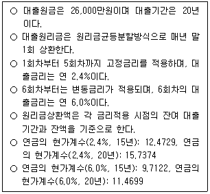 다음 조건의 주택담보대출이 있다. 6회차에 변동금리를 적용하여 산정되는 원리금상환액에 가장 가까운 값은? (단, 주어진 조건에 한함)