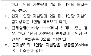 1인당 생산함수가 y = 0.5k0.5, 자본의 감가상각률이 0.1, 저축률이 0.2인 솔로우(Solow) 경제성장모형에 관한 설명으로 옳은 것을 모두 고른 것은? (단, y는 1인당 생산량, k는 1인당 자본량이고, 인구증가와 기술진보는 없다.)