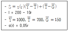 , I, r, s(r)은 각각 총저축, 총생산, 조세, 정부지출, 투자, 실질이자율(%), 민간저축률이며, 민간저축률은 실질이자율의 함수이다.)