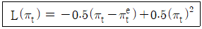 중앙은행이 아래와 같은 손실함수를 최소화하도록 인플레이션율을 결정하려고 한다.