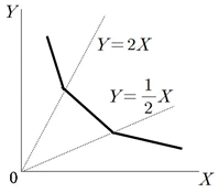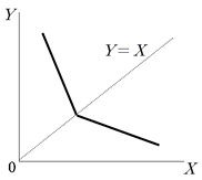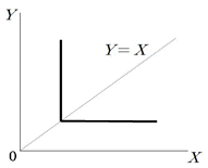 두 재화 X, Y에 대한 갑의 효용함수가 U = X + Y + min{X, Y}일 때, 갑의 무차별 곡선으로 적절한 것은?