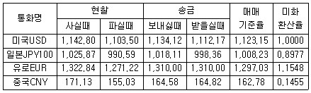 다음은 K은행에서 고시한 오늘 자 외환시세표이다. 이에 관한 사항 중에서 가장 적절하지 않은 내용은?