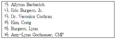 무역회사에 다니는 정비서는 영문 명함을 정리하고 있다. 아래 명함을 알파벳순으로 정리하시오.