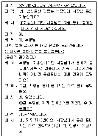 다음의 전화 대화 중 적절하지 않은 항목으로 묶인 것은?