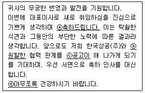 한국상공(주)의 대표이사 비서인 이나영씨는 거래처 대표이사가 새로 취임하여 축하장 초안을 작성하고 있다. 다음 축하장에서 밑줄 친 부분의 맞춤법이 바르지 않은 것끼리 묶인 것은?