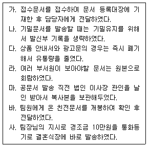 사단법인의 팀비서로 일하고 있는 전비서가 문서의 수발신 업무를 아래와 같이 하고 있다. 다음 보기 중 올바르지 않은 것끼리 묶은 것을 고르시오.