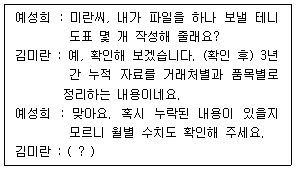 사원 김미란 비서는 예성희 과장으로부터 다음과 같은 업무지시를 받았다. 제시된 문장 중 대화의 마지막에 들어갈 표현으로 가장 부적절한 것은?