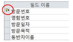 아래 그림은 MS-Access로 작성한 내방객 데이터베이스 테이블의 디자인의 일부이다. 이중 '○'안에 열쇠 표시된 필드의 특징이 아닌 것은?