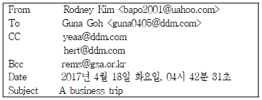 다음 이메일의 머리글(Header)을 보고 이와 관련된 설명이 가장 적절하지 않은 것은?
