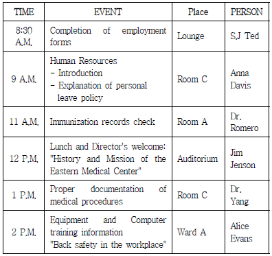 Read the following schedule. What activity is not on the schedule?