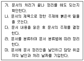 문서정리의 절차를 올바르게 연결한 것을 고르시오.