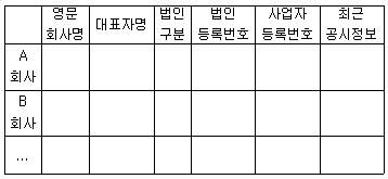 투자회사에 근무하는 이비서는 상사인 김부사장으로부터 몇몇 상장기업에 관해 아래 표와 같은 정보를 정리해 보고하라는 지시를 받았다. 이 경우 가장 최신의 공신력있는 정보를 일괄적으로 수집할 수 있는 곳은?