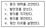 회의 진행시 새로운 안건을 위한 의사 진행순서로 바르게 나열된 것을 고르시오.