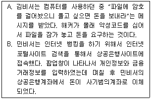 다음은 인터넷 사용 중 발생한 피해 사례에 관한 내용이다. A와 B가 각각 어떤 범죄에