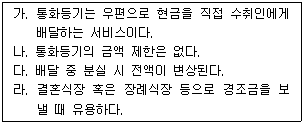 다음 우편서비스 중 통화등기(현금배달서비스)에 대한 설명으로 옳은 것으로만 구성된 것은?