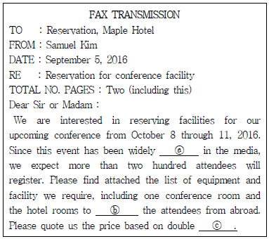 Fill in the blanks ⓐ~ⓒ with appropriate words.(순서대로 ⓐ, ⓑ, ⓒ)