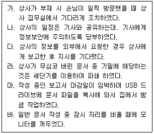 반도체 업체에서 일하는 조정민 비서의 행동 중 잘못된 것으로만 묶인 것은?