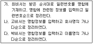 다음 각 비서들의 명함관리 방법에 해당하는 사례에 대한 정리 방법이 순서대로 기입된 것은?