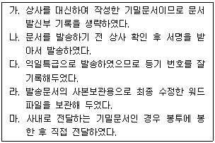 신입으로 들어온 김비서의 문서 발신 업무 처리에 대한 내용 중 바람직하지 않은 것끼리 묶인 것은?