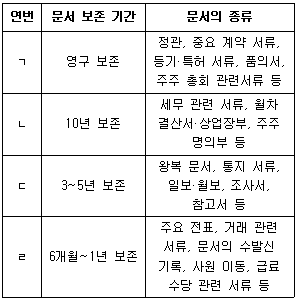 다음 중 문서의 보존기간과 문서의 종류가 잘못 짝지어진 것은?