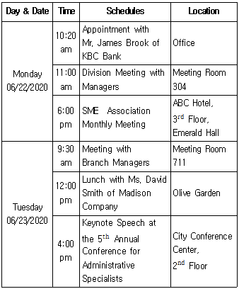 According to the following Mr. Lee's schedule, which one is NOT true?