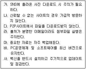 다음 중 랜섬웨어 감염을 예방하기 위한 행동이 나열되어 있다. 이 중 적절하지 않은 것은?