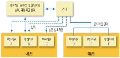 아래 도표와 같이 부하직원을 내집단과 외집단을 구분하여 설명하고 있는 리더십 이론은 무엇인가?