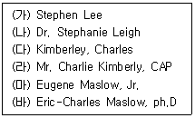 다음은 상사가 해외 출장 후 박비서에게 전달한 명함이다. 정리순서대로 올바르게 나열한 것을 고르시오.