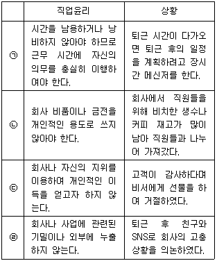 비서의 직업윤리와 그에 해당하는 상황 설명이 윤리에 적합한 것은?