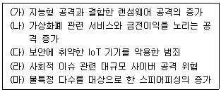 다음 중 사이버 보안위협 내용으로 옳은 것을 모두 고르시오.