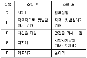 다음 중 소통성을 높이고 정확한 표현 사용을 위한 공공언어 바로 쓰기에 맞춰 올바르게 수정되어 변경된 것은?